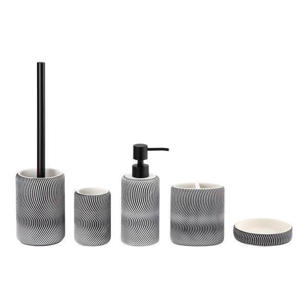 Sand stone bath accessories sets round & oval shape white color with balck swirl pattern hand wash dispenser bowl brush toothbrush tumbler holder Images |